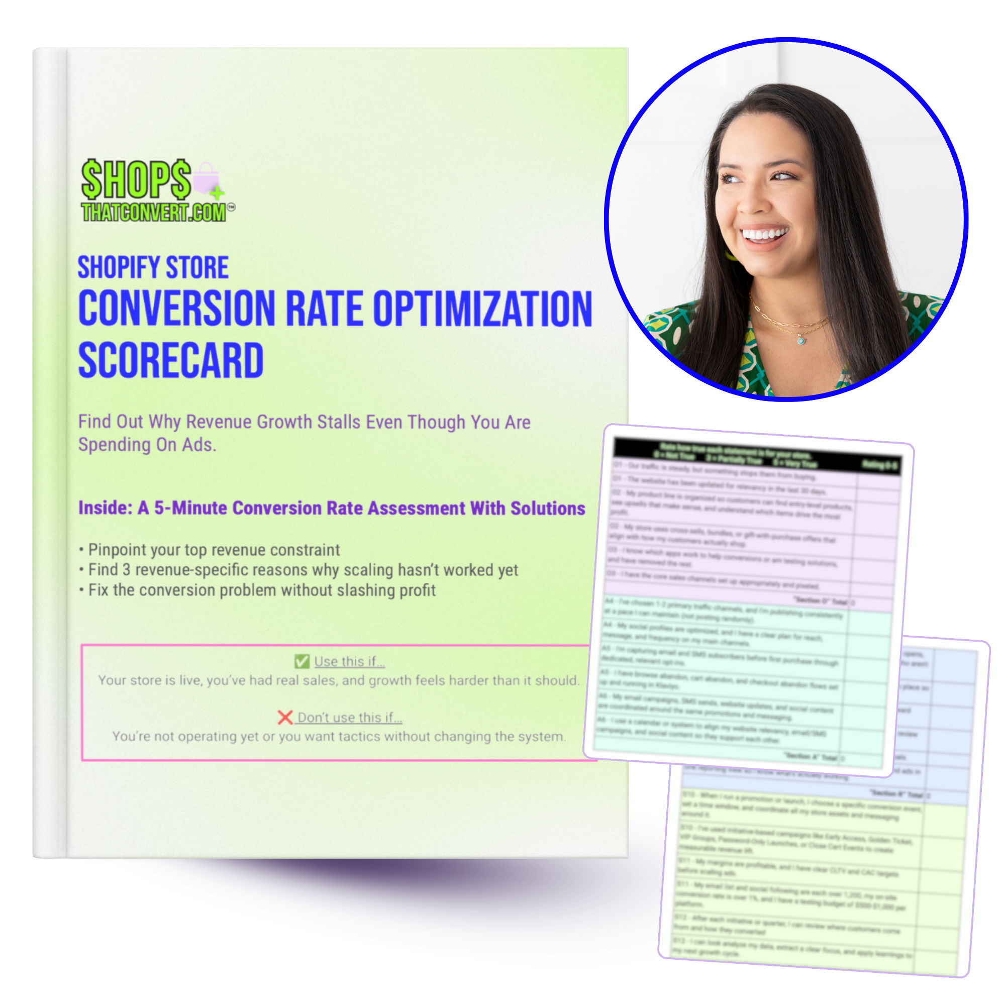 Sign up to get the FREE 5-Minute Conversion Rate Scorecard so you can increase revenue and profit in your Shopify store.